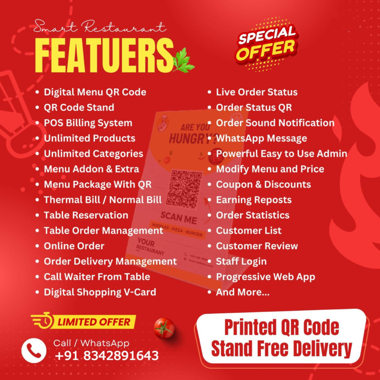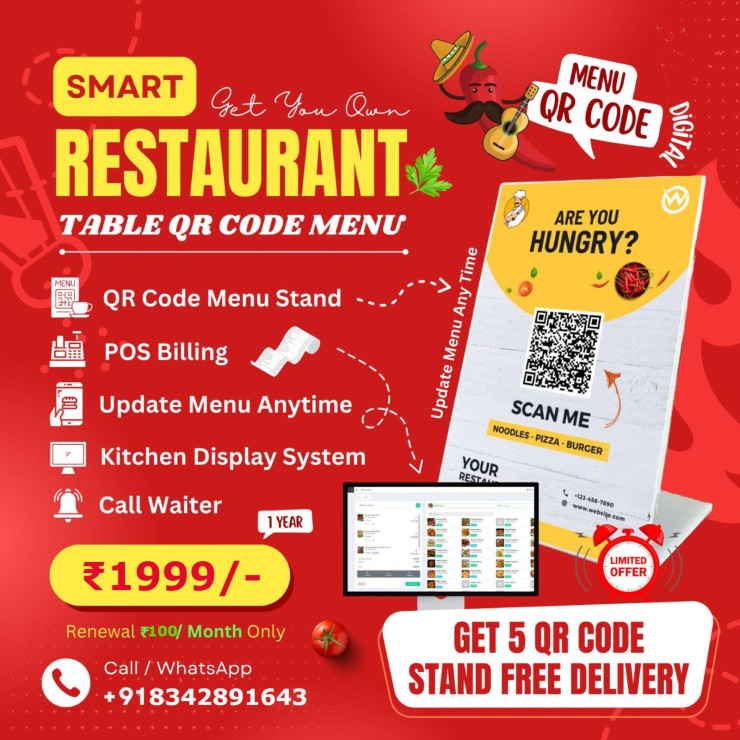 Manage your restaurant from QR code. POS billing, dining, take away, delivery with Kitchen display and Waiter calling. A complete new experience